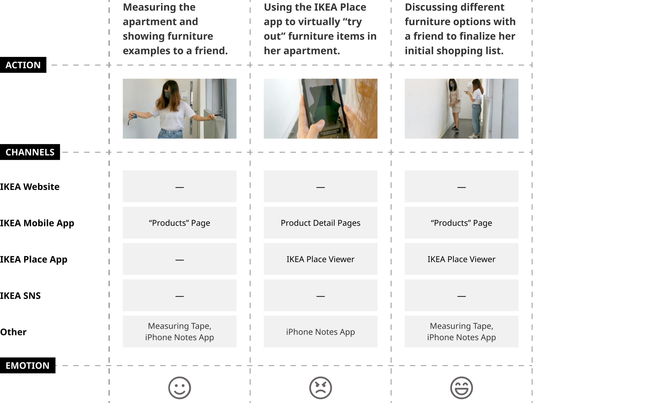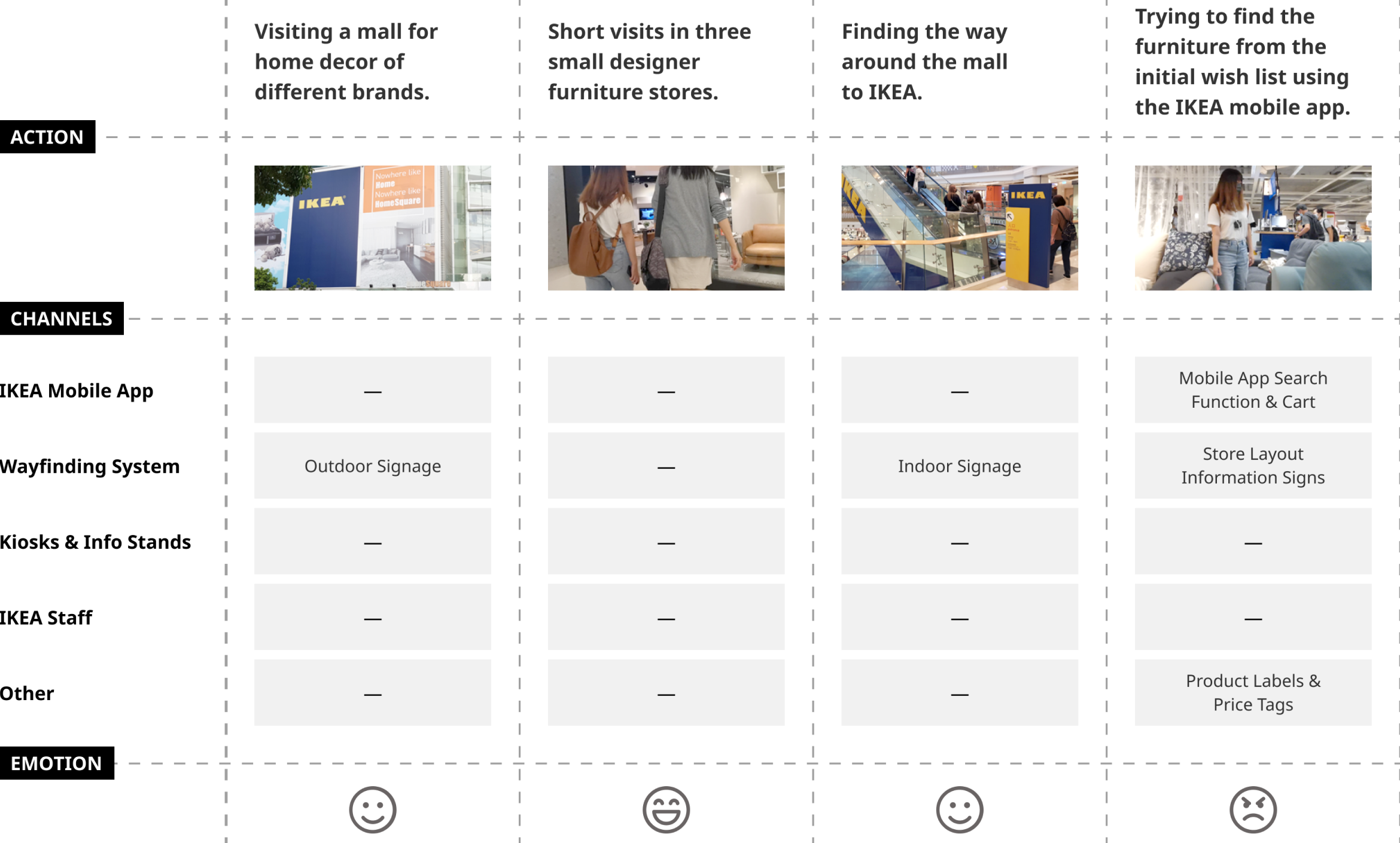 To understand more about the users' view and thoughts, we did a role-play and site visit in IKEA. We tried to use different platforms from IKEA and see if there are any strengths or weaknesses on the existing platforms.