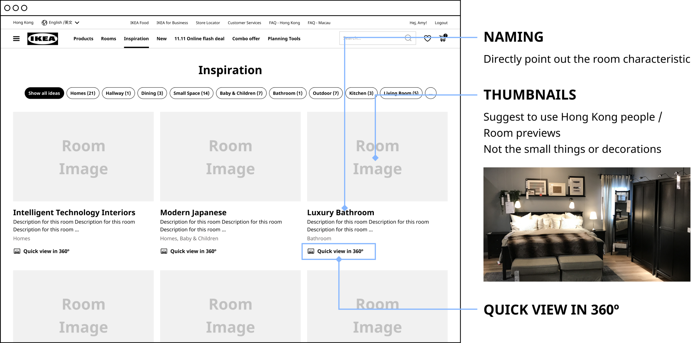Also, I am going to add the new features to the IKEA website. The 360º demo rooms and gallery about customers' photos on the inspiration page. A creation overview and room editor to enhance the existing planning tools.