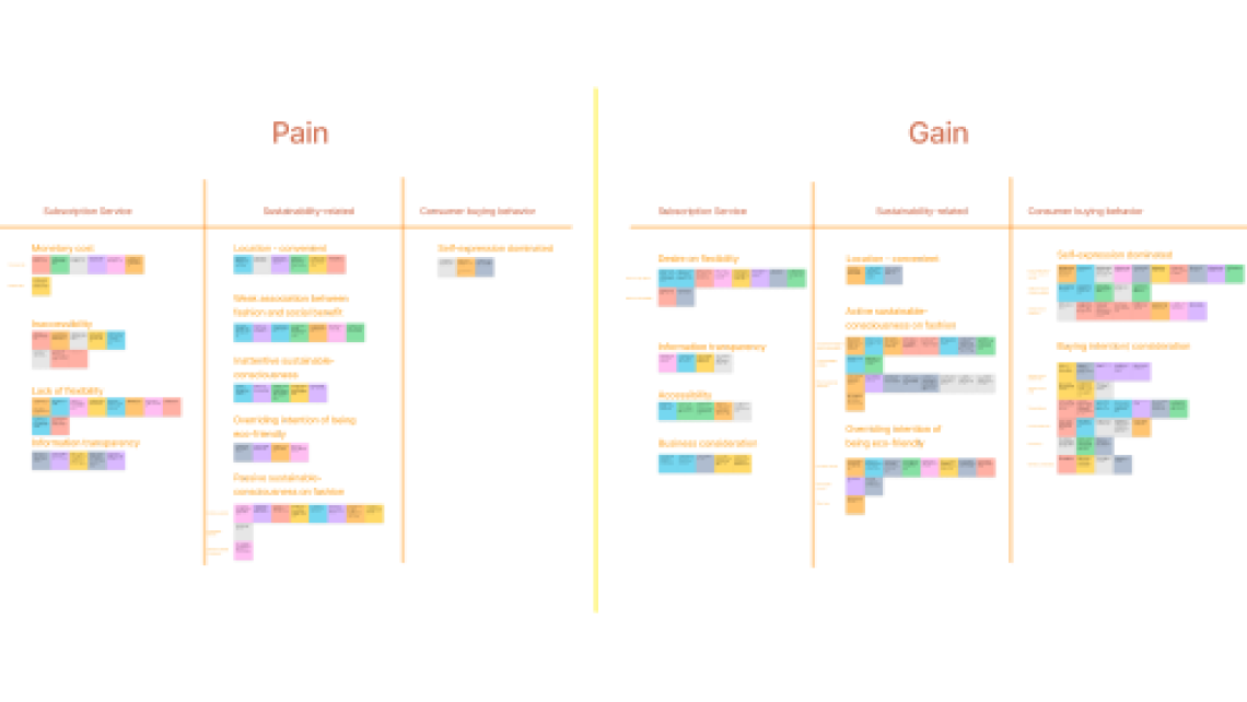 The interview results have gone through a 3-step analysis and synthesis to generate the final design criteria. The responses collected from the interview have been consolidated into raw data, followed by an empathy map analysis aiming to identify customers’ desires and barriers to initiating sustainable practices on fashion consumption. Then, we came up with three main design criteria.