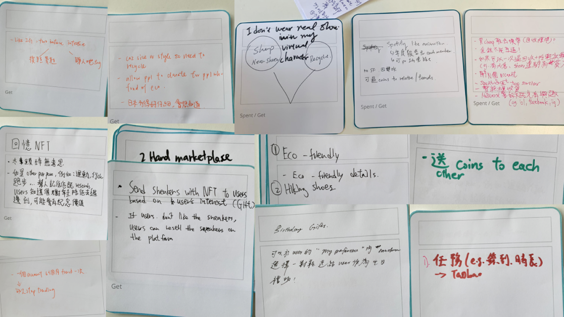 We briefly introduced the idea of using memories as the materialities being added to the digital shoes to compensate for the cost of the loss of product ownership to the participants and invited them to brainstorm the idea with us or comment on it.