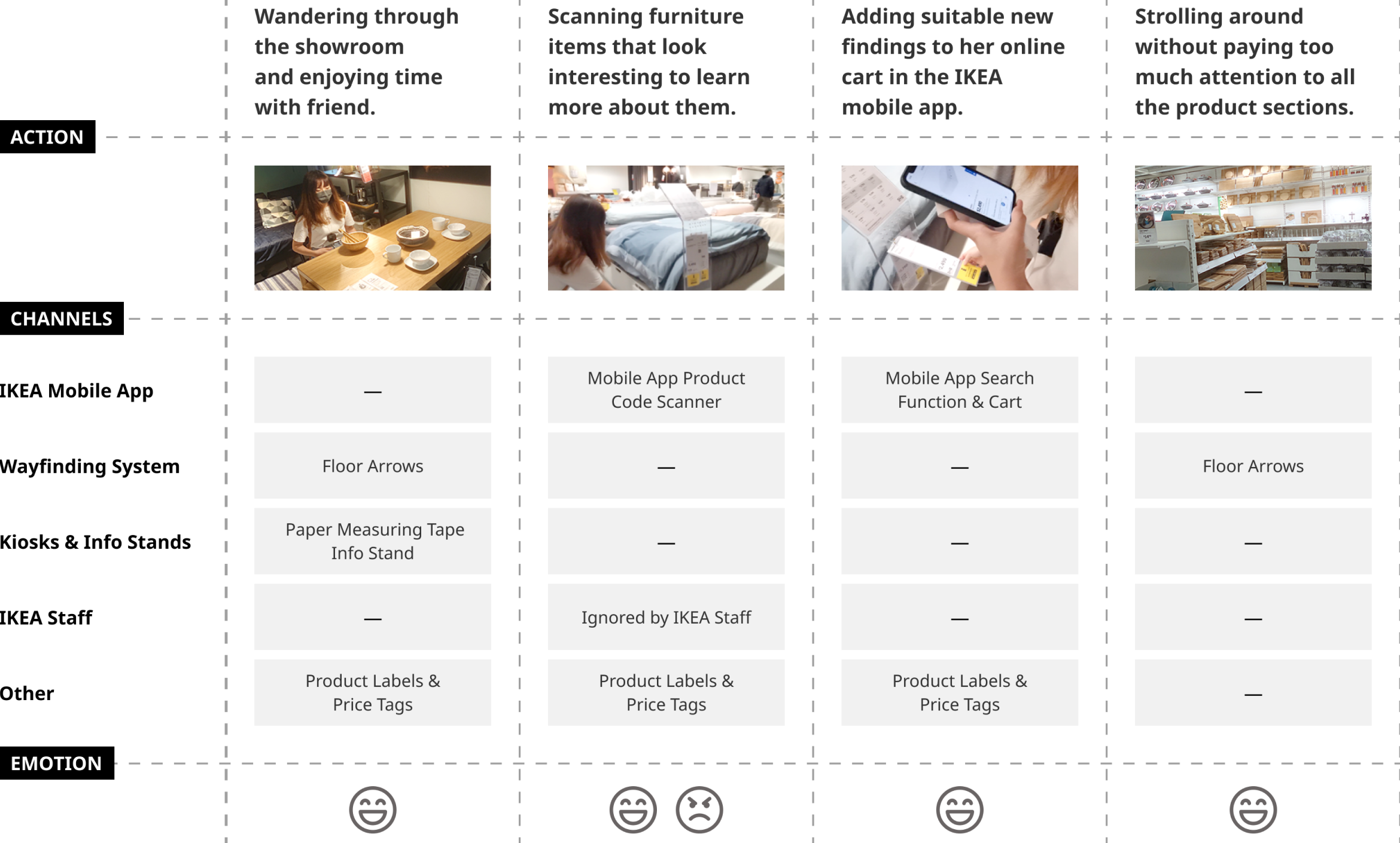 To understand more about the users' view and thoughts, we did a role-play and site visit in IKEA. We tried to use different platforms from IKEA and see if there are any strengths or weaknesses on the existing platforms.